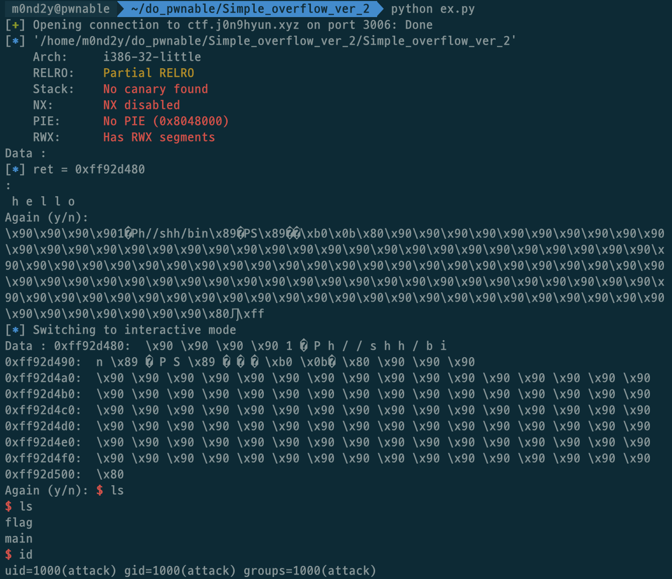 NX가 없으니 쉘코드를 입력해서 실행하면 되겠네요.