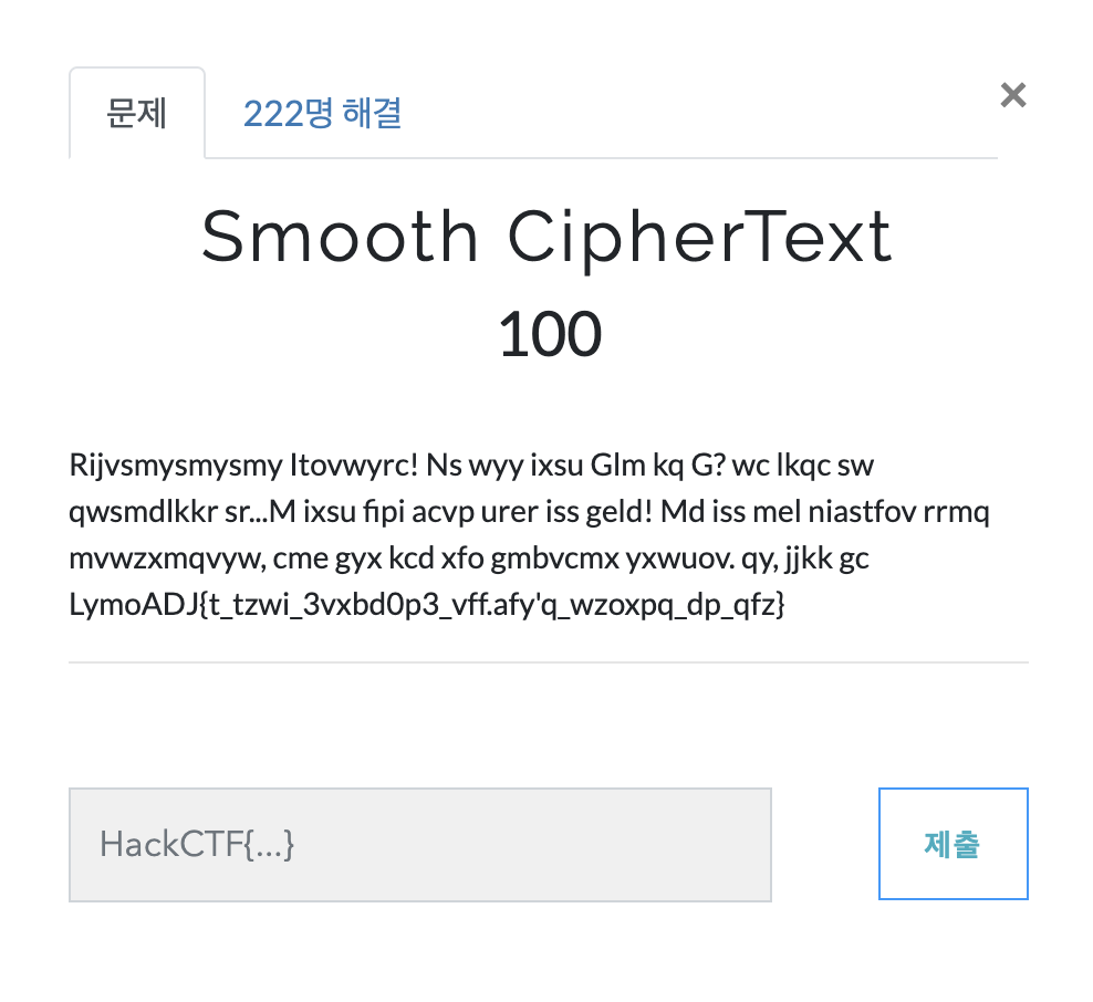 처음엔 카이사르암호인줄 알았는데 앞부분이 LymoADJ --> HACKCTF가 될 수 가 없는 상황이여서 비즈네르가 생각났다.