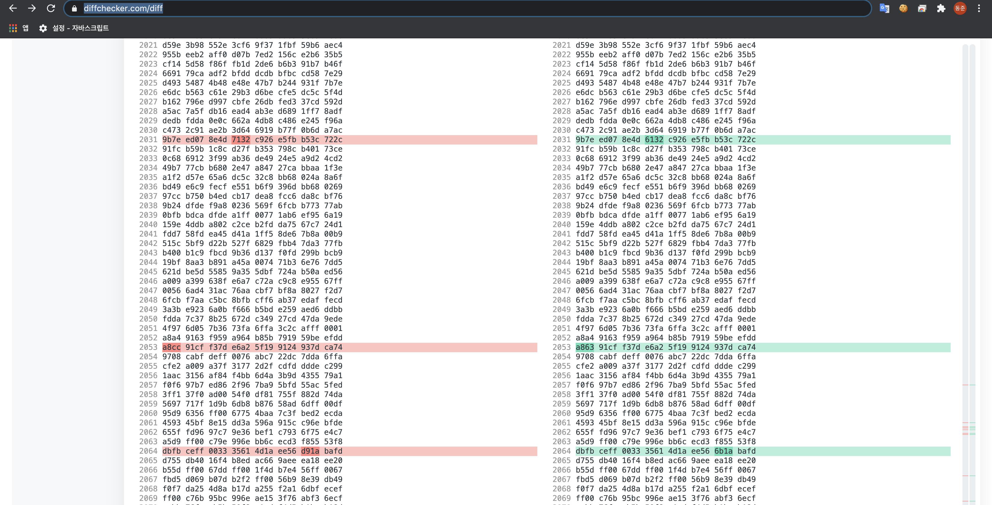 똑같은 이미지 두개를 주고 FLAG를 찾으라고 하니 자연스럽게 DIFF가 생각이 났고 둘을 비교하기위해서 IHEX를 사용했습니다.
