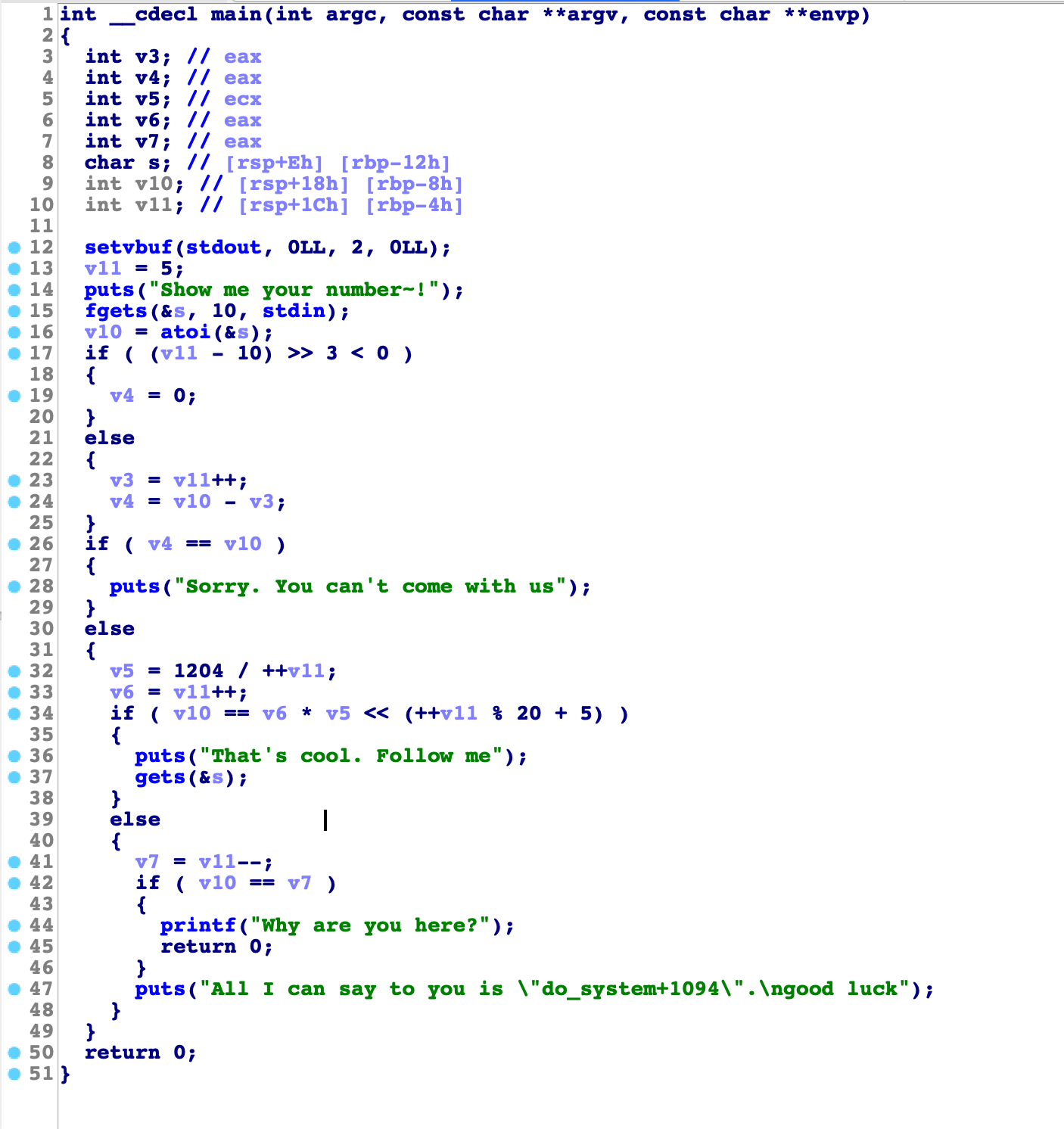 해당 부분에 들어가기 위해서 어떤 숫자를 입력해야할지 디버깅을 통해 확인해보겠다.