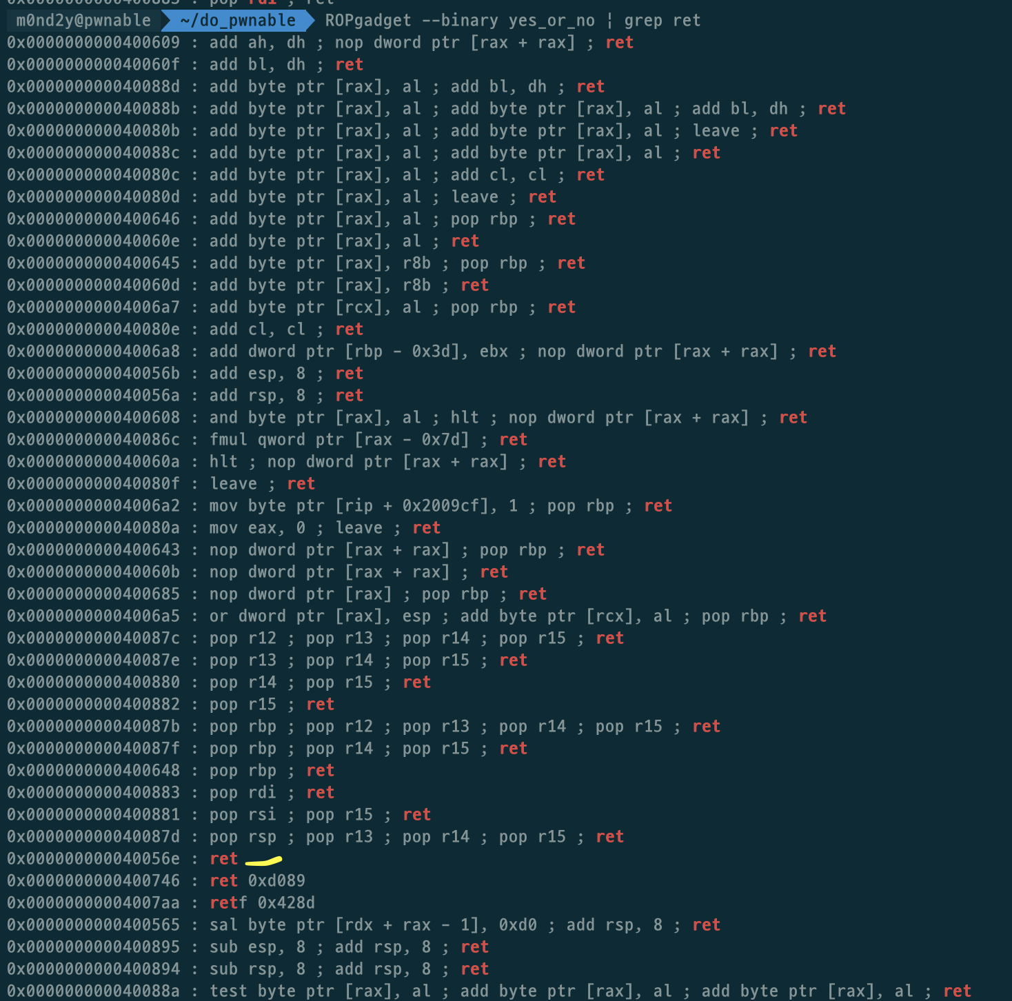 ret = 0x000000000040056e