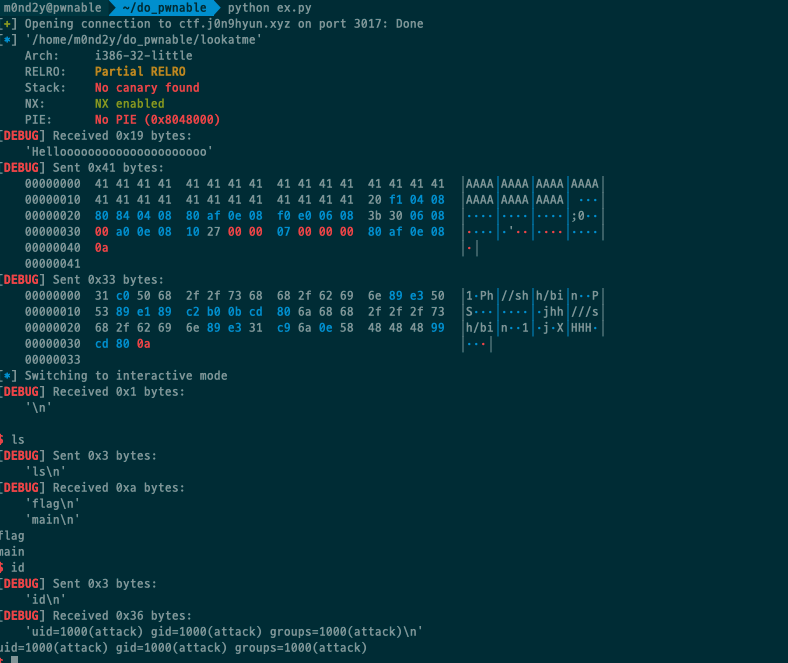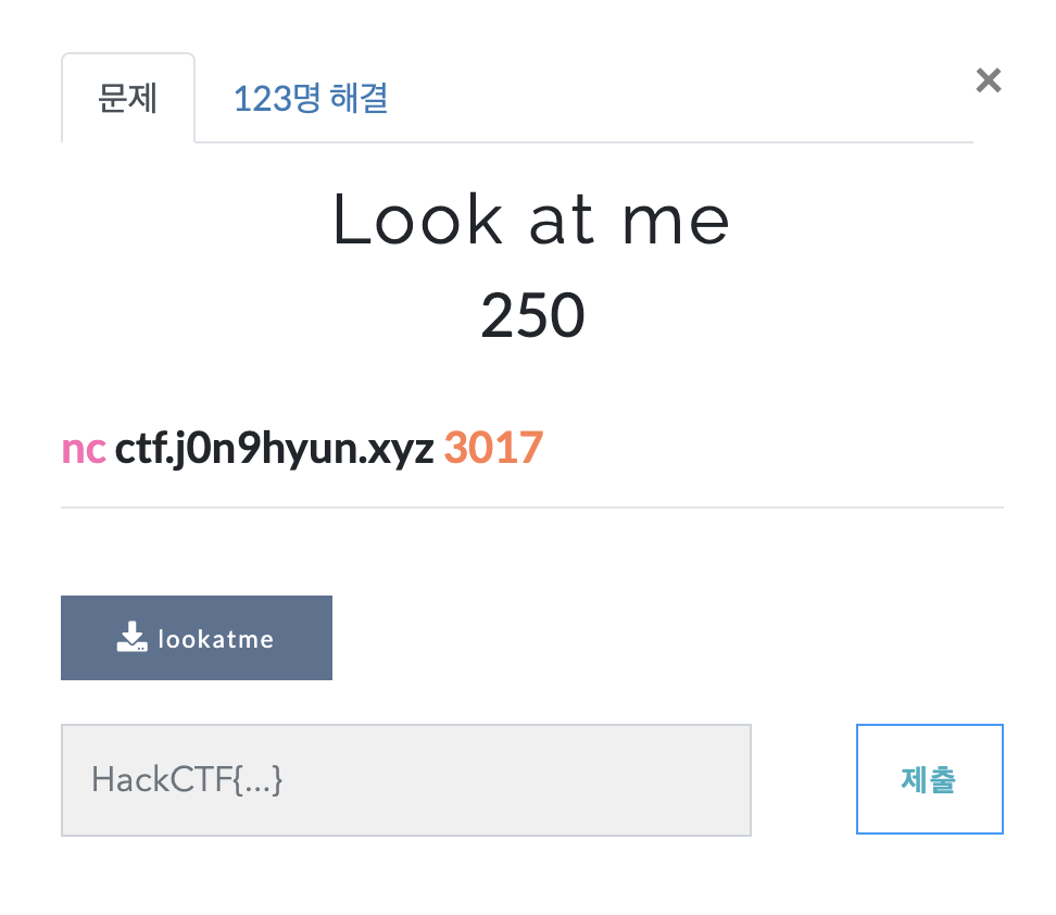 lookatme라는 파일 하나를 받을 수 있고, 해당파일을 실행시키면
