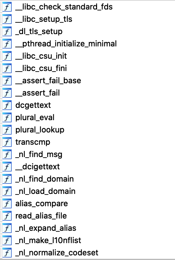 statically linked 여서 대부분의 함수가 포함되어 있을것으로 예상됩니다.