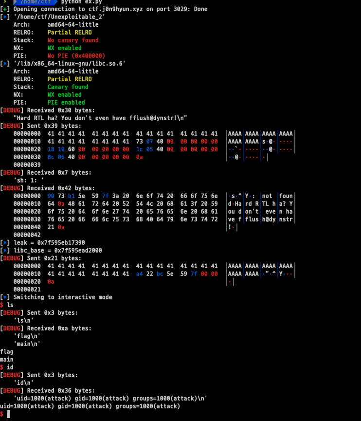 마침 카나리도 안보이니 ret만 잘 oneshot으로 덮어주면 될 것 같은데 oneshot을 쓰려면 libcbase를 알아야하니 여기서 멘붕에 조금 빠졌습니다. rop체인을 구성해서 bss에 /bin/sh 박아서 system인자로 넣어줄까도 생각하다가 pr가젯사용해서 system인자에 넣어주면 주소 출력한다는 이야기를 들은기억이 있어서 구성해봤는데 실제도 되더라고요...