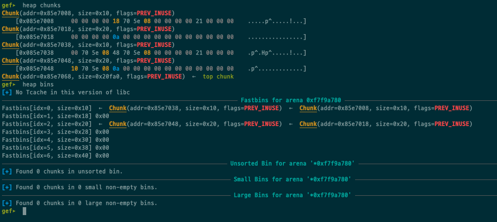 free하는 부분을 보면 2번 free가 이루어지는데, 2번째 heap free --> 1번째 heap free순서로 이루어진다.