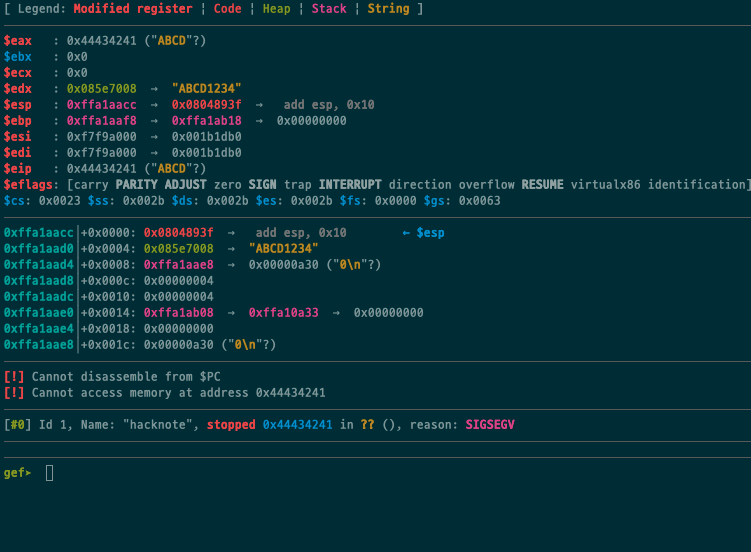 해당 주소로 함수가 실행되 crash가 되는것을 볼 수 있다(grin)