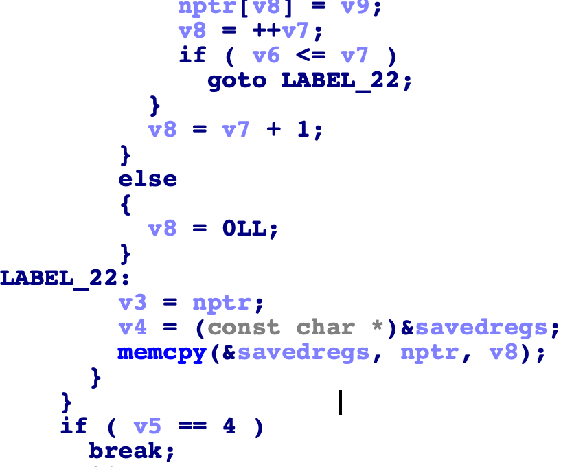 memcpy 부분에서 savedregs로 옮기는데 이 부분에서 savedregs가 sfp여서 쓱싹 해주면 된다.