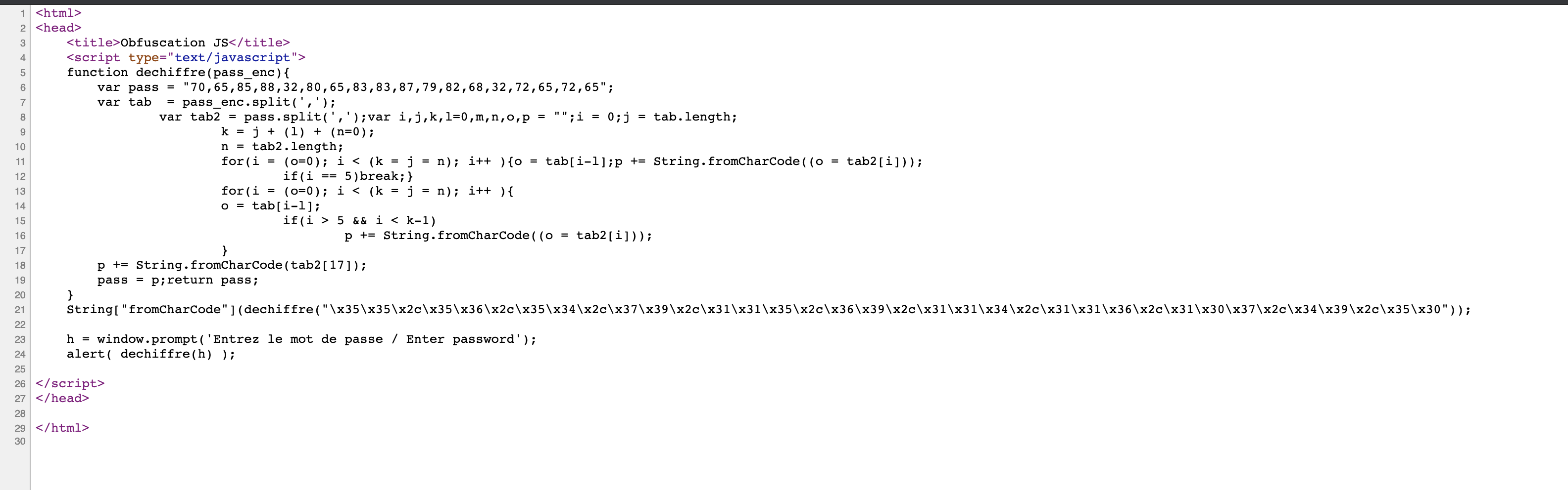 h = window.prompt('Entrez le mot de passe / Enter password');