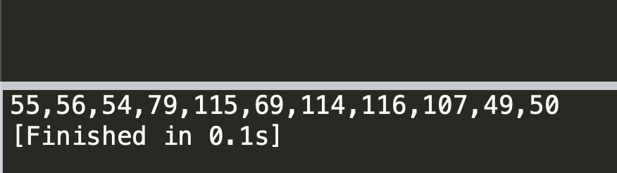a = [0x35,0x35,0x2c,0x35,0x36,0x2c,0x35,0x34,0x2c,0x37,0x39,0x2c,0x31,0x31,0x35,0x2c,0x36,0x39,0x2c,0x31,0x31,0x34,0x2c,0x31,0x31,0x36,0x2c,0x31,0x30,0x37,0x2c,0x34,0x39,0x2c,0x35,0x30]