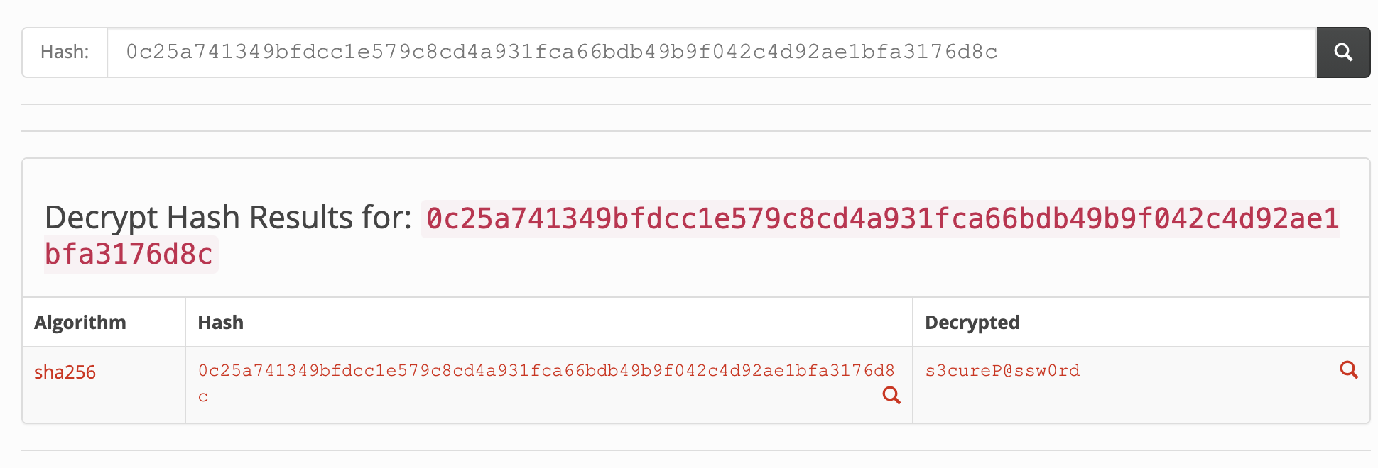 password 를 확인할 수 있고, sha256 을 복호화 해줍니다.