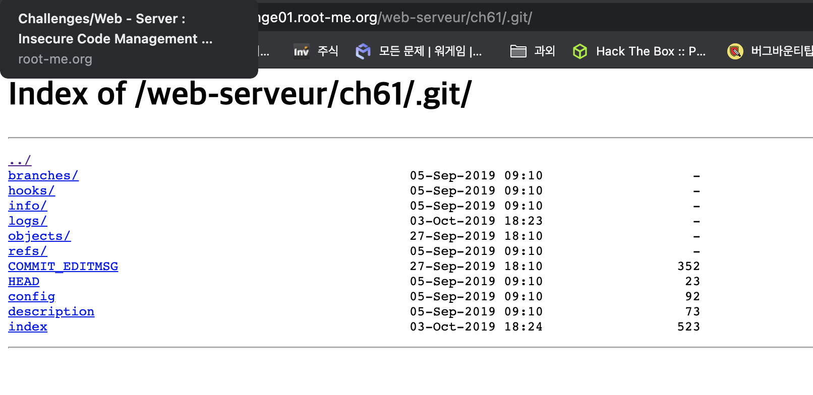 확인을 해보니 git 이 있는것을 확인할 수 있고, .git 문제답게 풀이를 진행합니다.