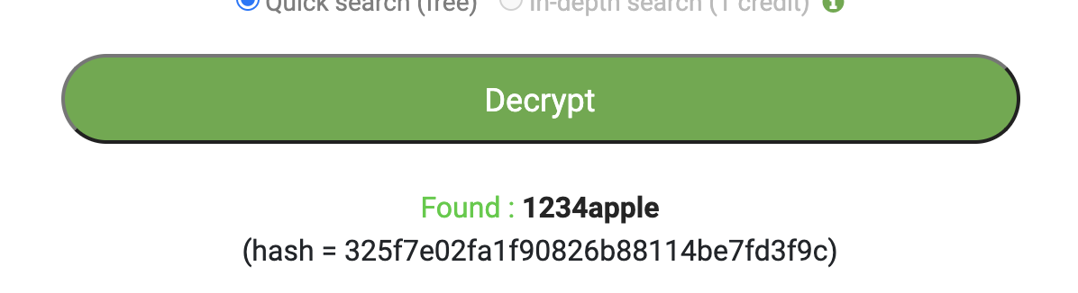 hash가 32자리니까 md5일 가능성이 높고, decrypt돌려주면