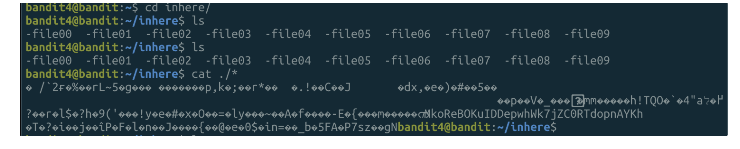 - ssh bandit4@bandit.labs.overthewire.org -p 2220