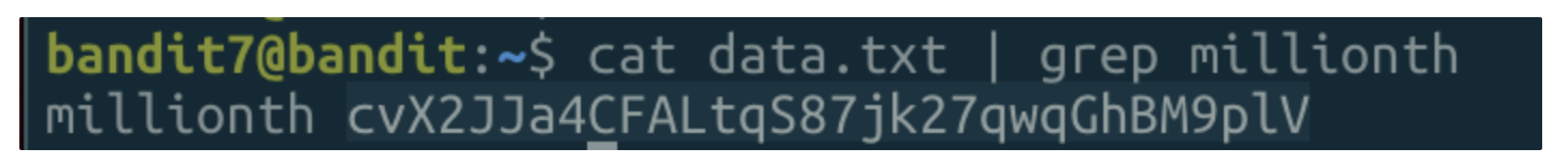 - ssh bandit7@bandit.labs.overthewire.org -p 2220