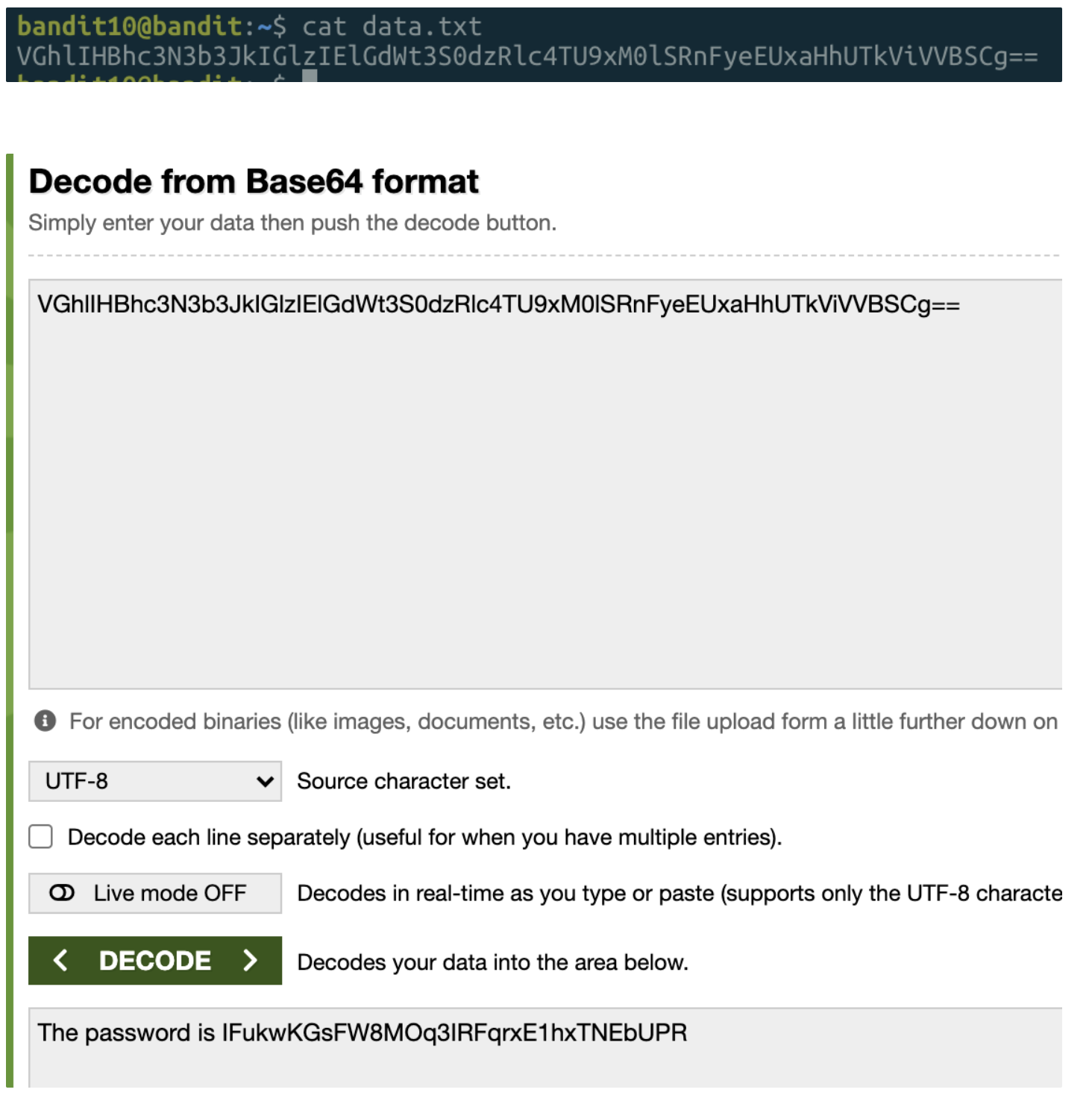 - ssh bandit10@bandit.labs.overthewire.org -p 2220