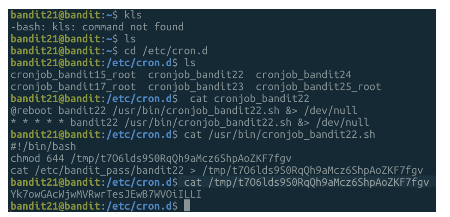 - cat /usr/bin/cronjob_bandit22.sh