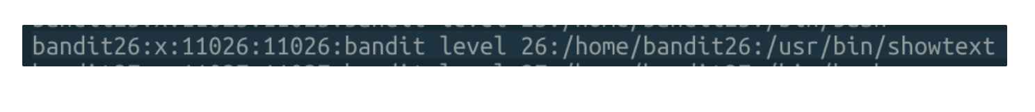 - ssh -i ./bandit26.sshkey bandi26@127.0.0.1