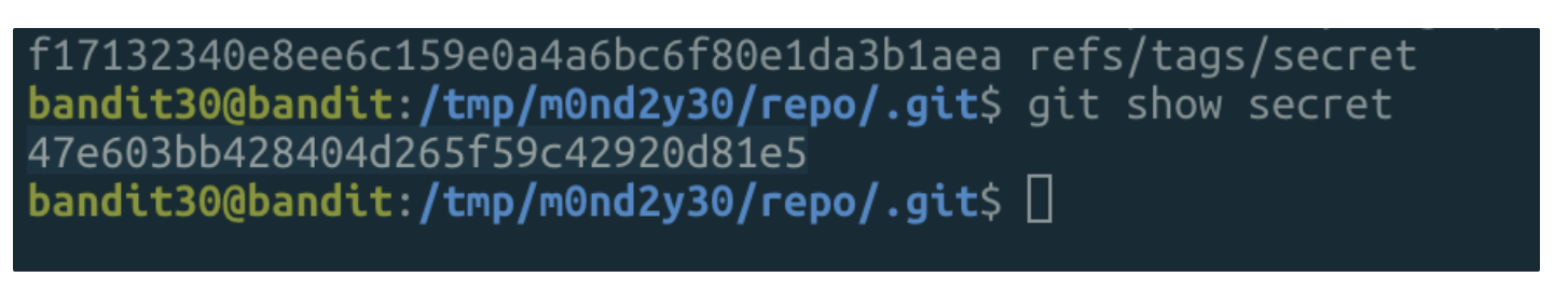 - ssh bandit30@bandit.labs.overthewire.org -p 2220
