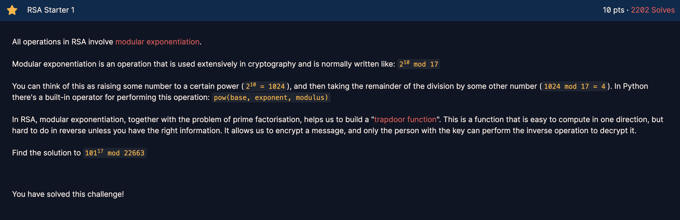 cryptohack.org - RSA Starter 1