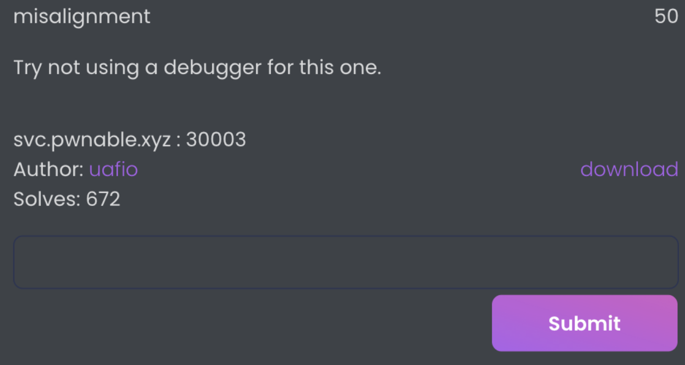 pwnable.xyz - misalignment