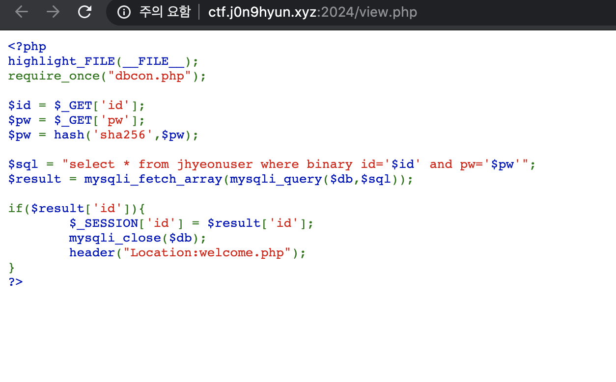 $sql = "select * from jhyeonuser where binary id='$id' and pw='$pw'";