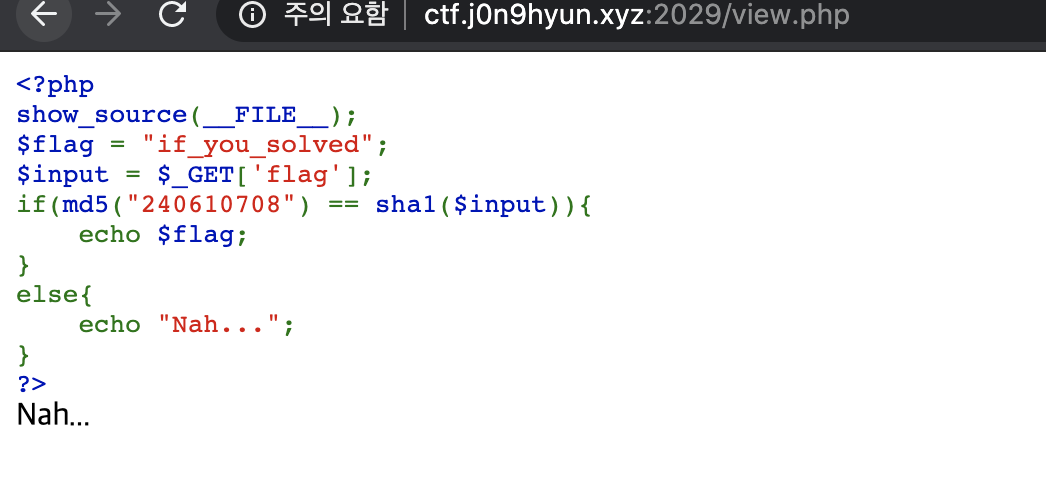 5번째 줄에서 input과 앞에 있는거의 해쉬를 비교하는데 php macig hash가 생각이 난다.