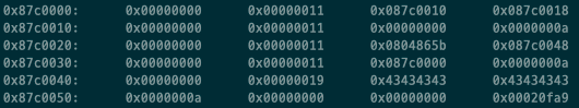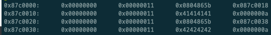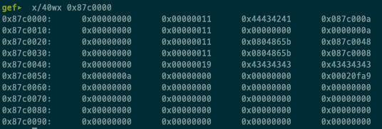 0x87c0008 부분이 ABCD로 바뀌게 됩니다. 그리고 이 부분을 호출하면